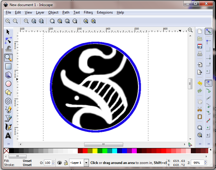 1. Open inkscape and import your drawing. It's as easy as dragging and dropping onto the page.