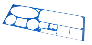 The below image is a scrap remainder from a job laser cut in blue acrylic. This visualization shows you can see the pieces are cut right out of the material like paper punch-outs, that is why we have the flat-rate per unit size pricing and you can put different designs on your page.